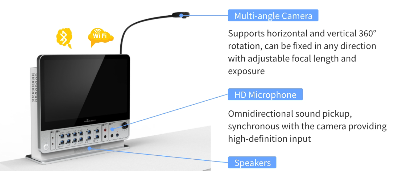 The AI smart classroom integrates advanced technology and intelligent devices to transform traditional teaching into an interactive, digitally optimized space—supporting in-person and remote learning with seamless efficiency.